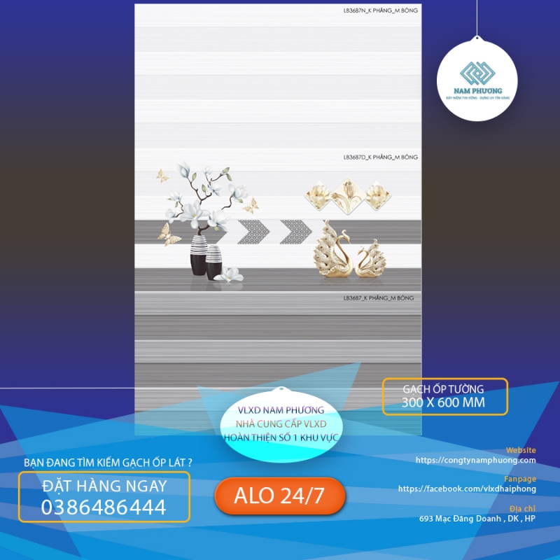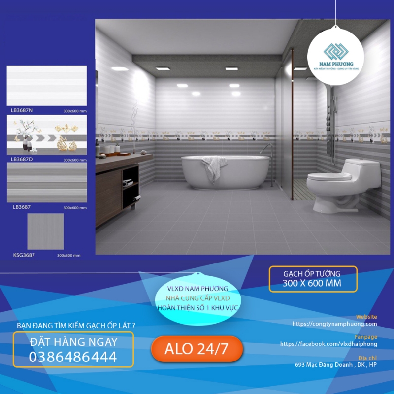 TRỌN BỘ GẠCH ỐP TƯỜNG PHÒNG TẮM LB3687N - LB3687D - LB3687 - KSG3687