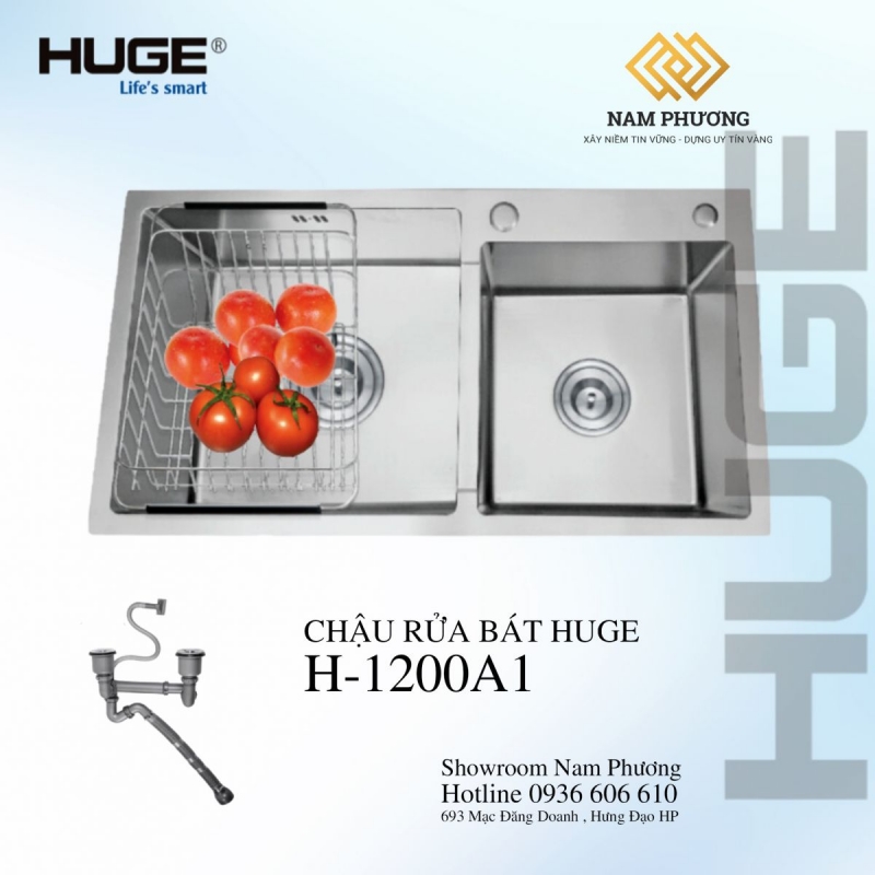 Chậu rửa bát HUGE H-1200A1 đi kèm với bộ xifong cao cấp ống to và bát rác cùng chất liệu sus304, tạo điều kiện thuận lợi cho việc nấu nướng và rửa bát. Bộ phụ kiện này không chỉ giúp công việc của bạn trở nên dễ dàng hơn mà còn đảm bảo tính thẩm mỹ của không gian bếp.