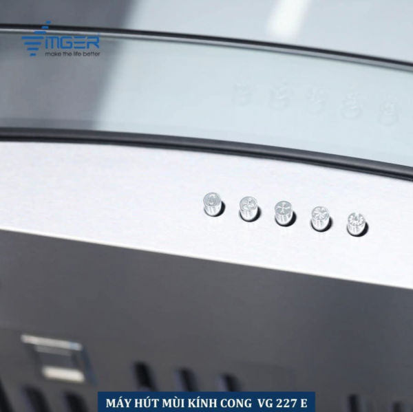 VMGER VG 227 E thiết kế với kiểu dáng treo tường, kính cong tinh tế. Hút mùi VG 227 E sử dụng chất liệu Inox chống gỉ và bề mặt lắp kính cường lực độ bền cao. VG 227 E không chỉ đẹp mắt mà còn bền bỉ với thời gian và đối mặt được với mọi điều kiện trong môi trường bếp.