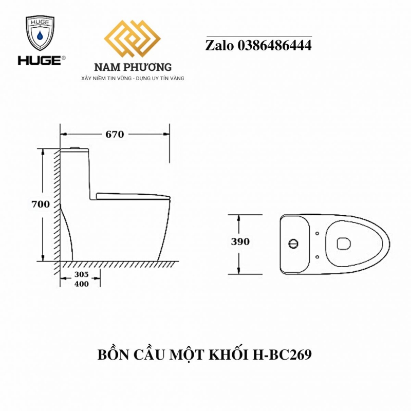 Với kích thước 670x390x700mm, bồn cầu H-BC269 phù hợp với nhiều không gian khác nhau, từ phòng tắm nhỏ gọn đến những không gian rộng rãi hơn.