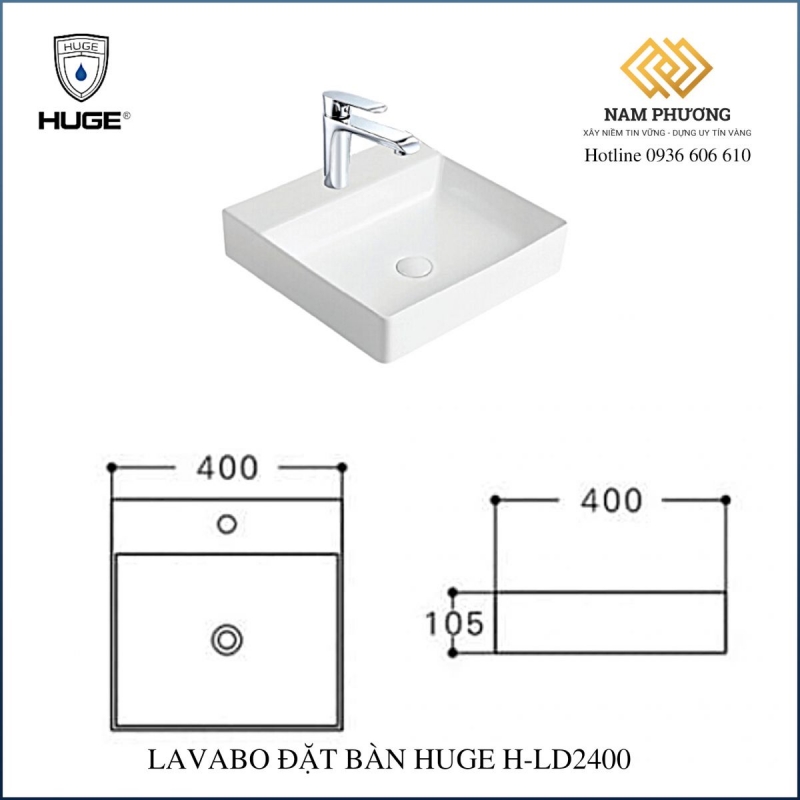 Lavabo đặt bàn Huge H-LD2400 có kiểu dáng vuông vức hiện đại, sang trọng và tinh tế. Vòi cắm chân chậu giúp rửa mặt và rửa tay trở nên tiện lợi hơn, đồng thời không gây vướng víu.
