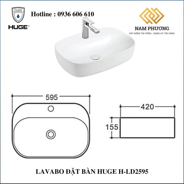 Kích thước của Lavabo đặt bàn Huge H-LD2595 là một điểm đặc biệt, giúp sản phẩm phù hợp với nhiều loại không gian phòng tắm khác nhau. Với kích thước 595x420x155mm, H-LD2595 có thể dễ dàng lắp đặt và sử dụng trong mọi môi trường.