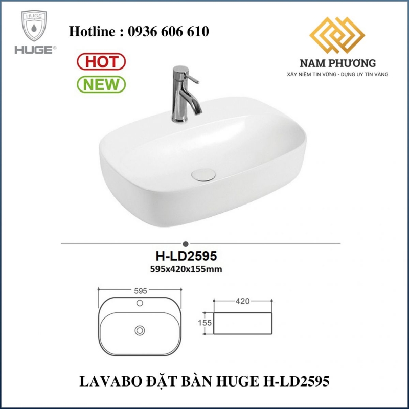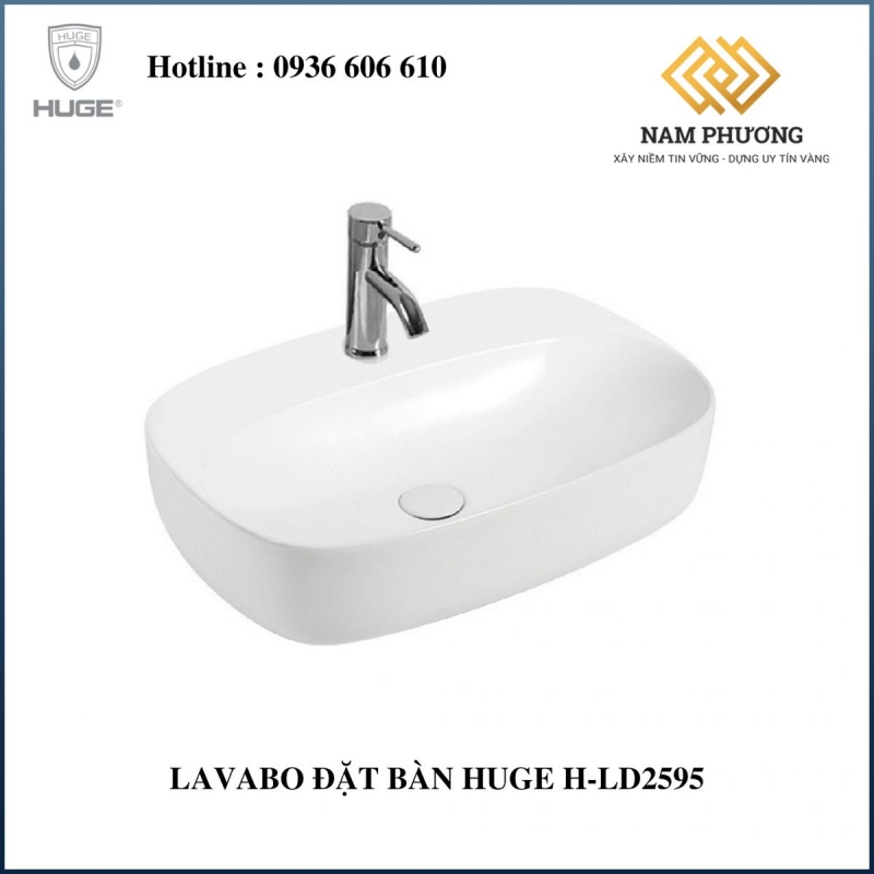 Lavabo đặt bàn Huge H-LD2595 có kiểu dáng hiện đại, sang trọng và tinh tế. Vòi cắm chân chậu giúp rửa mặt và rửa tay trở nên tiện lợi hơn, đồng thời không gây vướng víu.