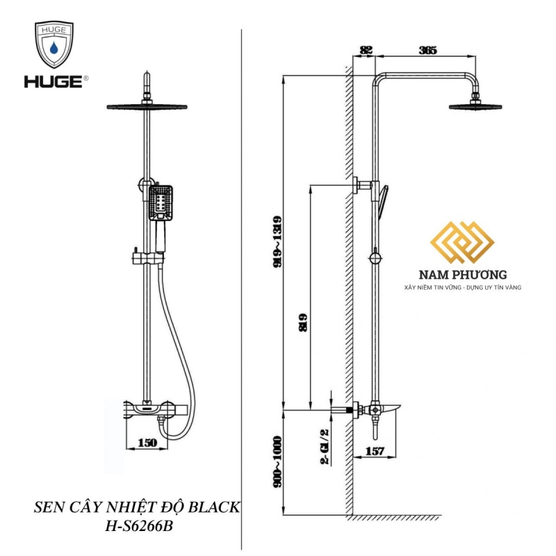 Tận hưởng trải nghiệm tắm nước đỉnh cao cùng Sen cây nhiệt độ Black H-S6266B.