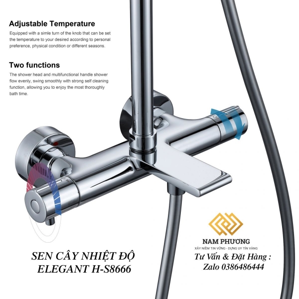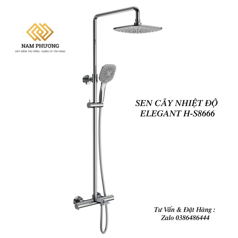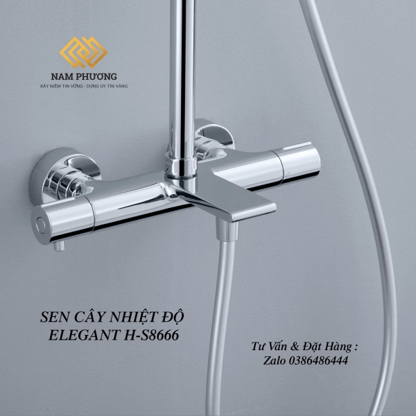 Sen cây nhiệt độ Elegant H-S8666 thiết kế theo phong cách hiện đại, màu crom sáng bóng và đẳng cấp. Bát sen hình tròn hiện đại với nhiều đầu phun, tạo cảm giác dễ chịu khi tắm.