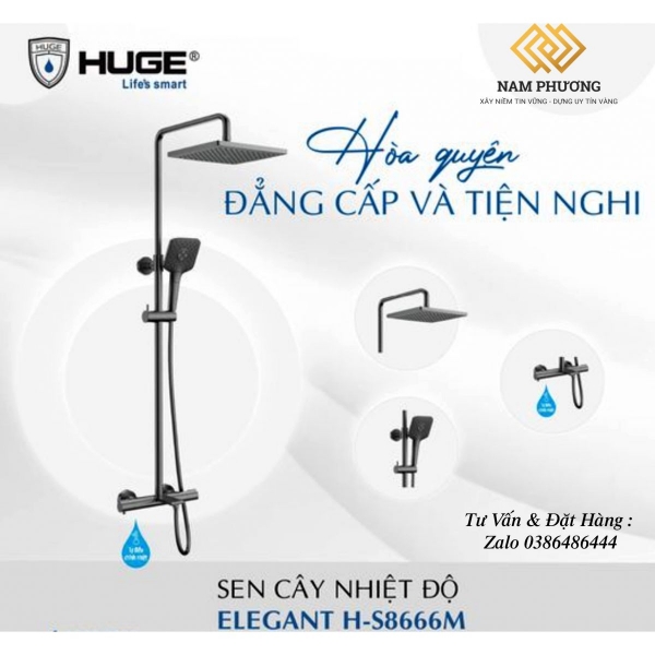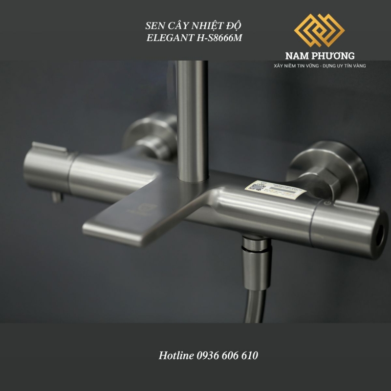 Sen cây nhiệt độ Elegant H-S8666M thiết kế theo phong cách hiện đại, màu metal grey mạnh mẽ và đẳng cấp. Bát sen hình vuông hiện đại với nhiều đầu phun, tạo cảm giác dễ chịu khi tắm.